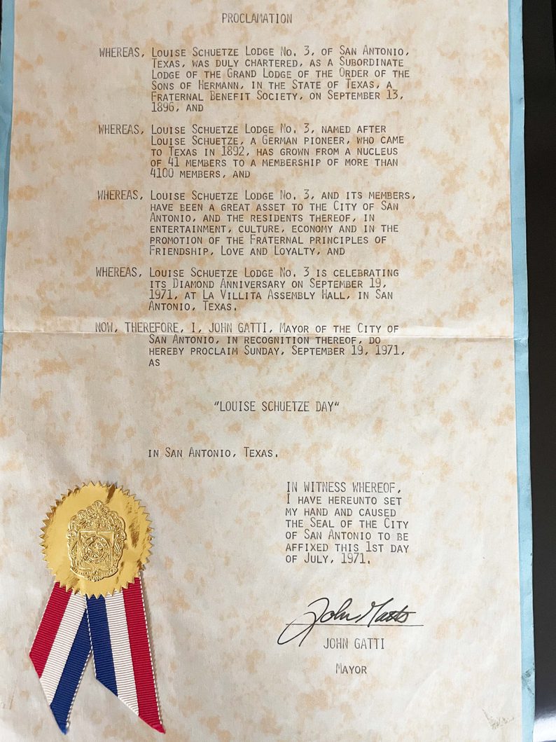The oldest Texas lodge, Harmonia, is one of San Antonio’s own and has been meeting regularly since July 1861. And, we bet you didn’t know that September 19 was “Louise Schuetze Day” by proclamation of the City of San Antonio, issued in 1971 to honor that lodge’s 75th anniversary. The Louise Schuetze lodge is one of a few “sister” lodges that only allow women.