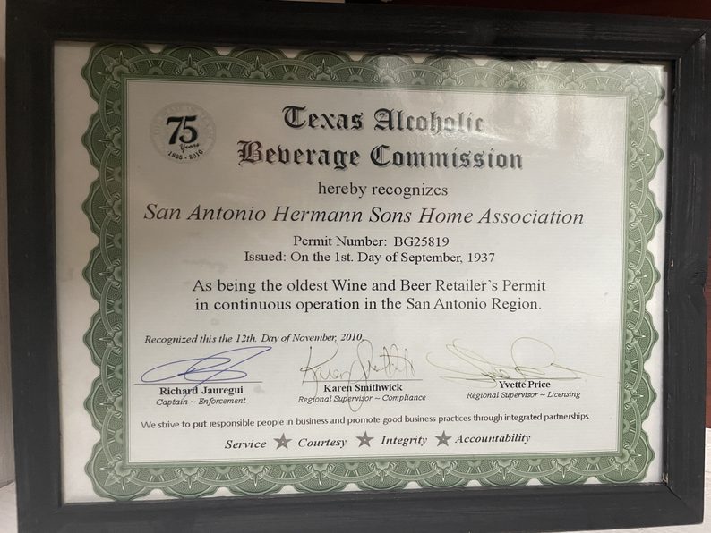 We were flattered to get a shout-out in the June 2023 issue of Texas Monthly in which the Texanist settled the dispute over the oldest bar in Texas. Although the Rathskeller Bar is not the oldest bar in the state, we boast the oldest continuously held Texas Alcoholic Beverage Commission (TABC) Beer & Wine license, a superlative we are proud to claim. The TABC was established in 1935, not long after the 21st amendment repealed prohibition. The Rathskeller Bar TABC license was issued on September 1, 1937 although we know people have been drinking beers in the basement since well before that date.